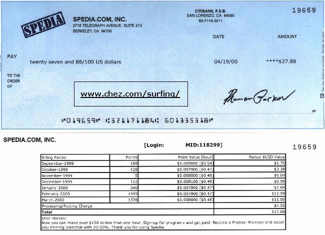 Voici quelques chèques reçus de Spedia